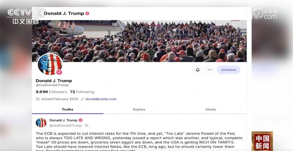 美国媒体分析特朗普着急让美联储降息有两个原因。美国《财富》杂志网站报道说,特朗普希望降低利率以“抵消”关税政策所带来的通胀。美联社则认为,特朗普的关税政策令美国经济衰退风险加剧,而特朗普似乎希望把责任推到鲍威尔身上。