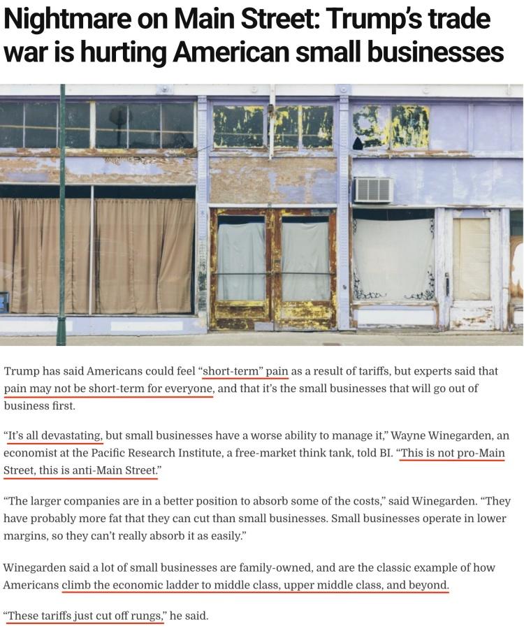 维恩加登表示,很多小企业都是家族企业,是美国人通往中产阶级乃至更高阶层的经济阶梯,然而“这些关税切断了人们的阶梯”。