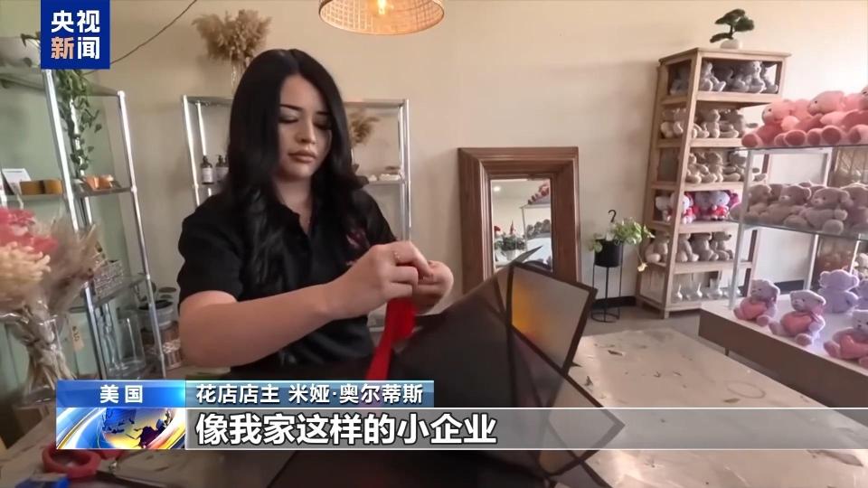 花店店主 米娅·奥尔蒂斯:关税政策正在伤害像我家这样的小企业,我们的玫瑰是厄瓜多尔进口的。