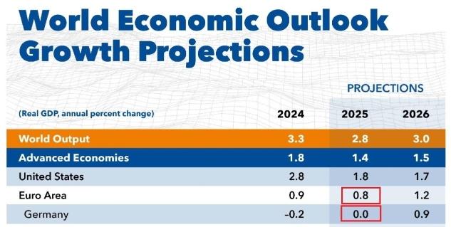 根据国际货币基金组织(IMF)的最新《世界经济展望报告》,受美国关税措施冲击和政策不确定性的影响,今年欧元区经济增长率预计将比之前下调0.2个百分点至0.8%。