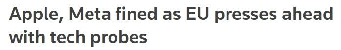 日前,欧盟委员会认定美国苹果公司和元宇宙平台公司违反欧盟《数字市场法案》,对其分别处以5亿欧元和2亿欧元罚款。这也是《数字市场法案》去年3月生效以来,欧盟首次对大型科技公司开出罚单。