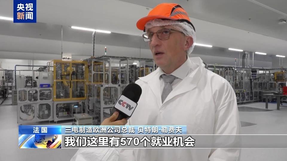 三电制造欧洲公司总裁 贝特朗·勒费夫:我们这里有570个就业机会,我们拥有一个技术中心,提供高质量的就业岗位,我们的生产线在技术上处于领先地位。