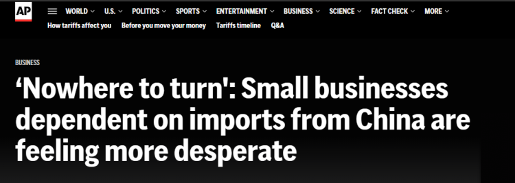 马萨诸塞州的游戏公司、肯塔基州的人造花企业、密歇根州的茶店……美联社近期发布的一篇报道注意到,自4 月初美国政府宣布要提高中国进口商品的关税时起,面对不断减少的库存和飞涨的成本,许多依靠中国进口商品生存的美国小企业主正变得越来越绝望。