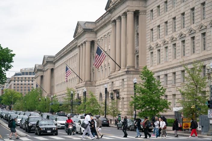 这是2024年4月25日在美国首都华盛顿拍摄的商务部大楼。新华社记者刘杰摄