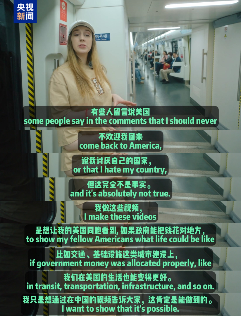 中国的快速发展也让@BeeRose in China感到震惊。她账号中夸赞中国基建的视频曾遭受了美国同胞们的质疑,她在视频中坦言道“我不是讨厌自己的国家,我做这些视频是想让我的美国同胞看到,如果美国政府也能把钱像中国一样花对地方,美国人的生活也会变得更好。”
