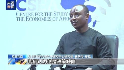 尼日利亚非洲经济研究中心研究员 安东尼·布松:对不同国家设定“基准关税”和“对等关税”,我们认为这是政策缺陷,它甚至会对最不发达国家产生影响。比如,根据非洲过去两年的贸易情况来看,该政策对非洲的影响就很大,特朗普总统需要冷静下来,重新审视这项政策。我们应该走向全球合作,而不是走向孤立主义。