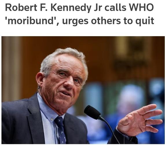 在20日举行的第78届世界卫生大会上,美国卫生与公众服务部长小罗伯特·弗朗西斯·肯尼迪(以下简称小肯尼迪)在一段发给大会的视频讲话中称世卫组织正“濒临死亡”,敦促世界各国和世卫组织本身“把美国退出世卫组织视为一个警钟”,并“鼓励其他国家考虑加入(美国的行动)”。