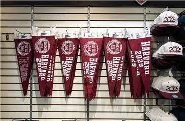 △哈佛大学商品在马萨诸塞州剑桥市的一家商店里展示