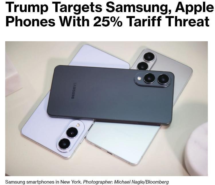 同样是在23日,特朗普还威胁说,凡是在国外制造并在美国销售的苹果手机,都应该被征收至少25%的关税。韩国三星电子公司和其他生产手机的企业也将面临美国的关税。相关政策预计从6月底开始实施。