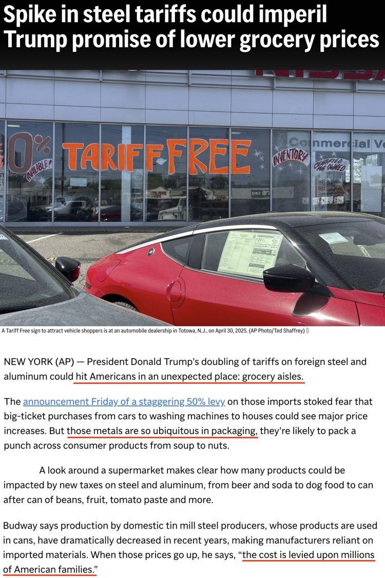 具体而言,超市里从啤酒、苏打水到狗粮,再到豆类、水果和番茄酱等各种罐装食品,都会受到钢铝新关税的影响。