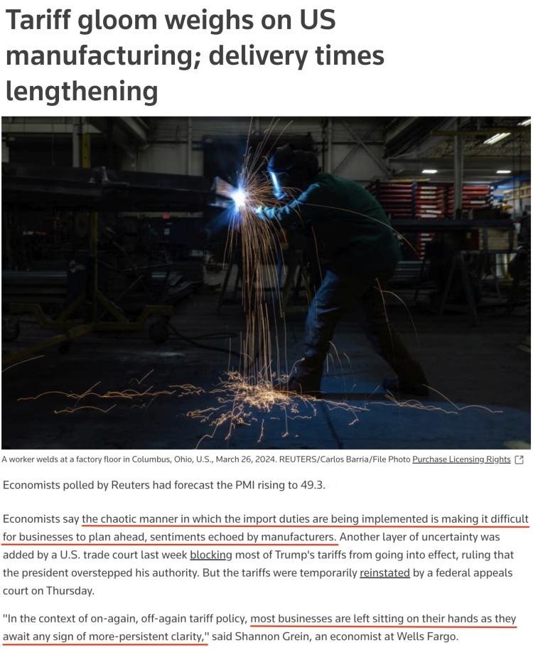 而美国国内研究机构则警告指出,关税税率的反复调整让众多企业陷入进退两难的境地,不仅难以实现美国制造业振兴目标,反而会导致原材料价格飙升,进一步冲击美国各行各业。