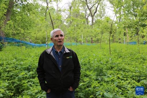 5月22日,在美国艾奥瓦州,比尔·佩利特查看种植的农作物。新华社记者 刘亚南 摄