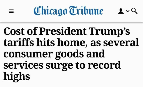 据《芝加哥论坛报》网站(Chicago Tribune)12日报道,美国最新消费者价格指数数据显示,特朗普政府发起的“贸易战”正影响着民众的日常生活,从食品杂货到电费账单,不少都飙升至历史高位。