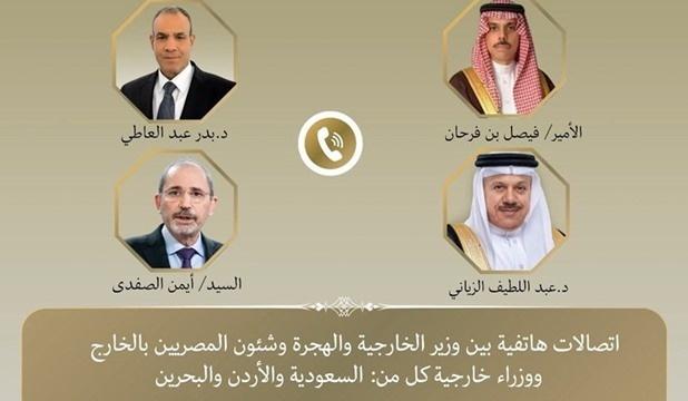当地时间6月15日,埃及外长阿卜杜勒阿提同沙特外交大臣费萨尔、约旦外交大臣萨法迪和巴林外交大臣扎耶尼通电话,讨论伊朗与以色列冲突后迅速升级的中东局势及其对该地区安全与稳定构成的严重威胁。