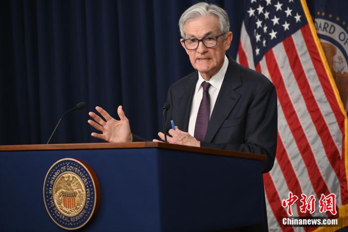 图为美联储主席鲍威尔出席记者会。记者 陈孟统 摄