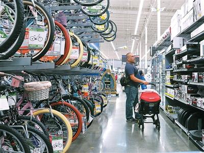 消费者在美国加利福尼亚州洛杉矶县一家沃尔玛商店内采购商品。邱 晨摄(新华社发)