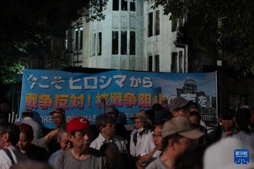 8月5日,民众在日本广岛和平纪念公园举行反战集会。新华社记者 贾浩成 摄