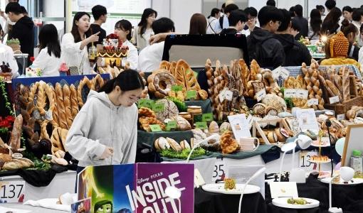 5月24日,在韩国首尔,人们参观厨师们制作的各类美食。新华社发(全休相摄)