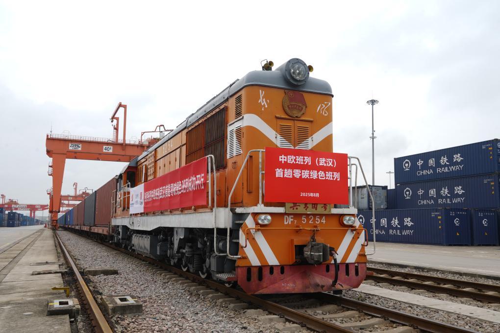 编组55辆、装载着汽车零配件等货物的75063次列车8月13日10时45分从中国铁路武汉局集团有限公司吴家山站开出,作为中欧班列(武汉)开出的首趟零碳绿色班列,其将经阿拉山口出境,最终抵达德国杜伊斯堡。