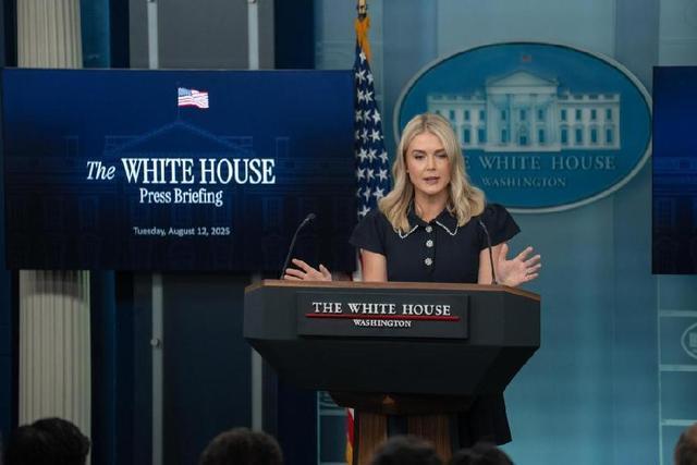 8月12日,在美国首都华盛顿白宫,白宫新闻秘书莱维特出席记者会。新华社记者胡友松摄