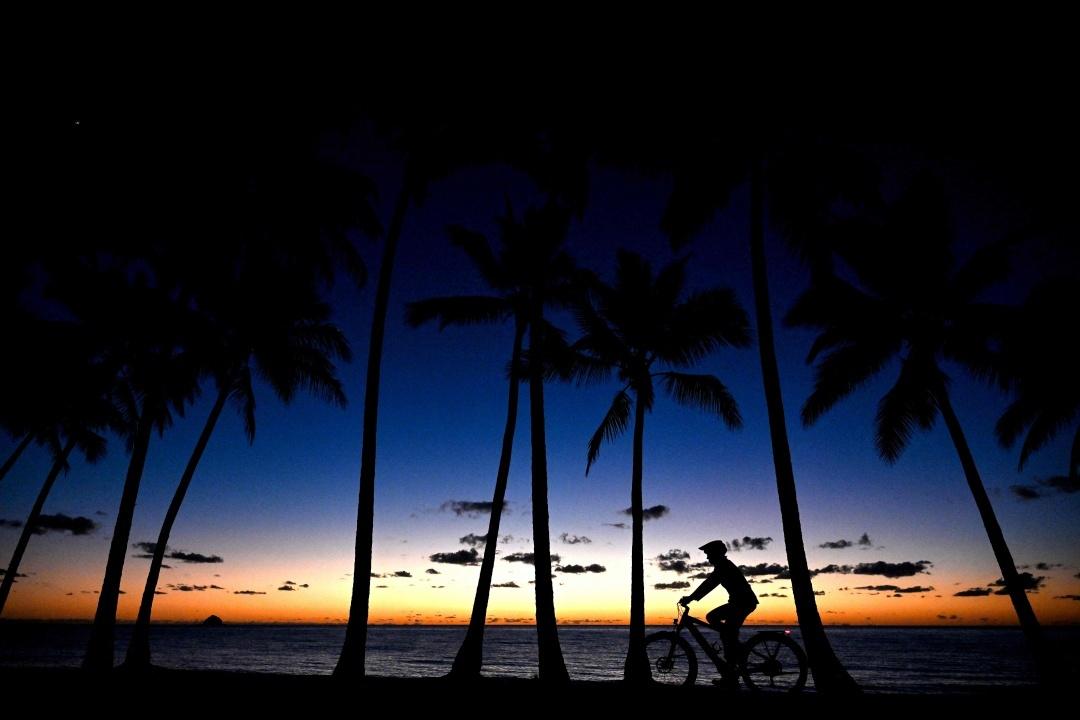 8月19日,一名男子骑车经过澳大利亚棕榈湾海滩。新华社/法新