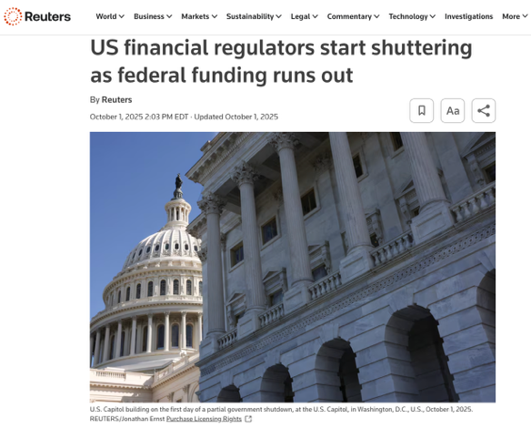 △路透社报道,由于政府停摆,金融监管机构仅保留极少人员维持运转,IPO审核延迟,可能影响投资人情绪