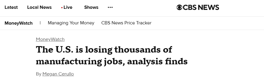现实数据也为这一观点提供了有力佐证。美国哥伦比亚广播新闻网站(CBS News)报道称,8月份美国制造业岗位削减了1.2万个,4月份以来已累计减少4.2万个岗位。美国进步中心(CAP)直指原因就是特朗普政府大幅加征新关税、强硬的移民政策和“大而美”法案。