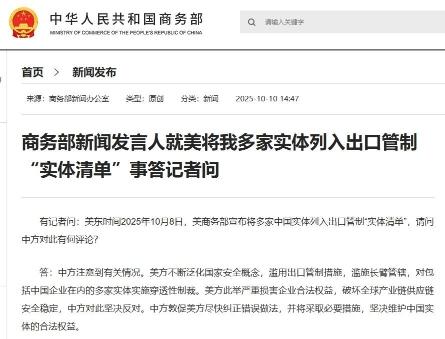 有记者问:美东时间2025年10月8日,美商务部宣布将多家中国实体列入出口管制“实体清单”,请问中方对此有何评论?