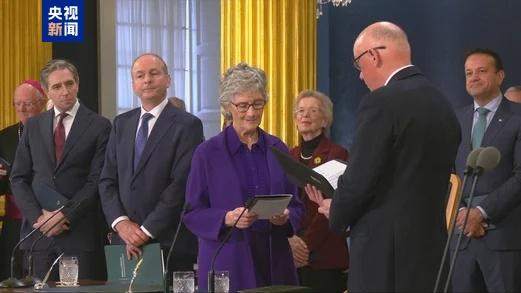 当地时间11月11日,爱尔兰新任总统凯瑟琳·康诺利的就职典礼在爱尔兰都柏林城堡举行。康诺利宣读并签署声明,正式就职爱尔兰总统。