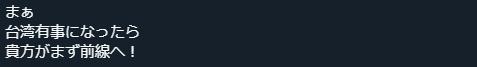 帖文大意:呵呵,若台湾有事,你先冲去前线!