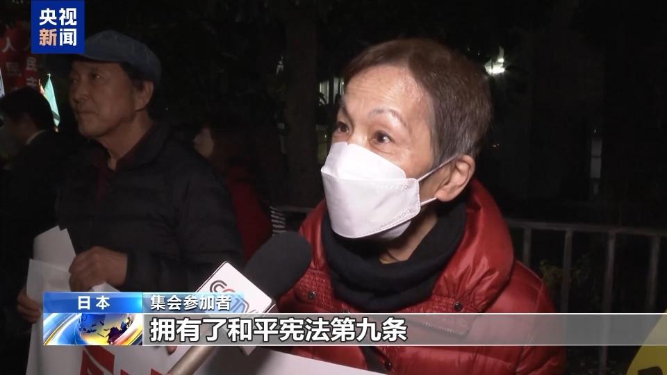 集会参加者:日本战败投降后,拥有了和平宪法第九条,现在要突破这个和平宪法,我们绝不能允许。对于亚洲人民来说,日本政府模糊战争责任,在战败投降后,又走上扩军的道路,我认为这是极其错误的。