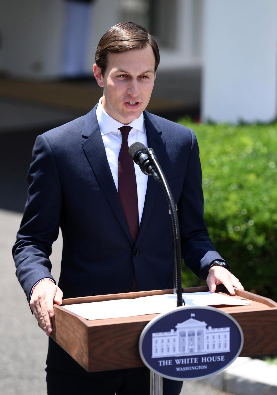 2017年7月24日,在美国首都华盛顿白宫,特朗普的女婿库什纳发表声明。新华社记者 殷博古 摄