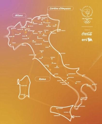 △米兰冬奥会火炬在意大利境内的传递路线图。图源:米兰冬奥组委