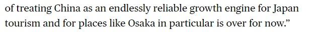 文章还援引华凯营销(China Trading Desk)首席执行官兼创始人苏布拉马尼亚·巴特(Subramania Bhatt)的话:“对日本旅游业、尤其是大阪等地来说,把中国视为一个持续可靠增长引擎的时代已经结束了。”