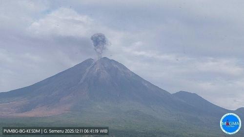 据印尼火山地质减灾中心(PVMBG)消息,当地时间2025年12月11日6时41分,印尼东爪哇省塞梅鲁火山发生喷发。火山灰柱高约1100米,喷发持续时间为129秒。
