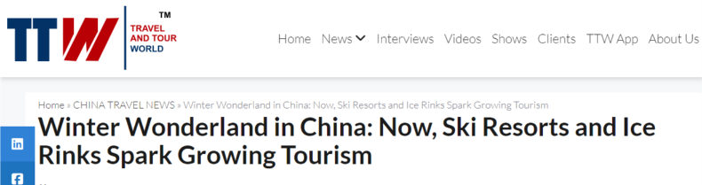美国《旅行与旅游世界》网站12月12日发表文章,关注冰雪运动在中国的日益盛行是如何助推冬季旅游蓬勃发展的。