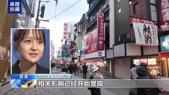 全日本新闻网记者 石桥侑子:大型商店表示,相关影响已经开始显现。该店铺称 ,以往有许多外国游客前来购物 ,但近期中国游客数量减少,带动相关销售额下滑。此外,一家大型连锁便利店也表示,目前旅游景点附近的门店已经受到了影响。