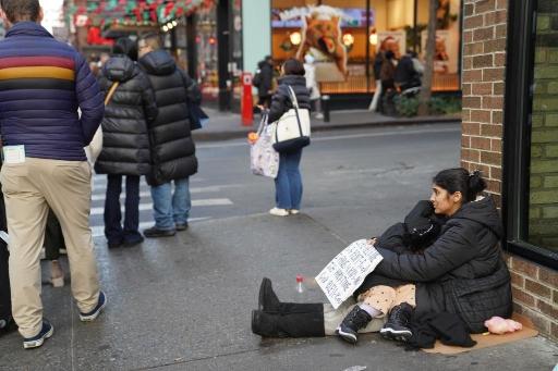 12月18日,一名女子在美国纽约曼哈顿街头寻求救助。新华社记者 张凤国 摄