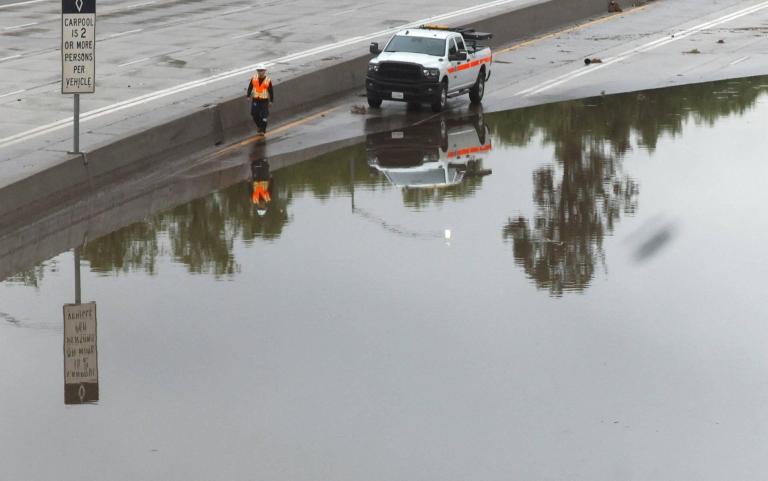 受风暴侵袭,美国加利福尼亚州南部24日遭遇强降雨,引发大范围洪涝灾害,地面和空中交通受影响。本次风暴由“大气河”现象引发。“大气河”是出现在约1.5千米高空的大气水汽密集输送带,宽可达数百公里,长可绵延数千公里。