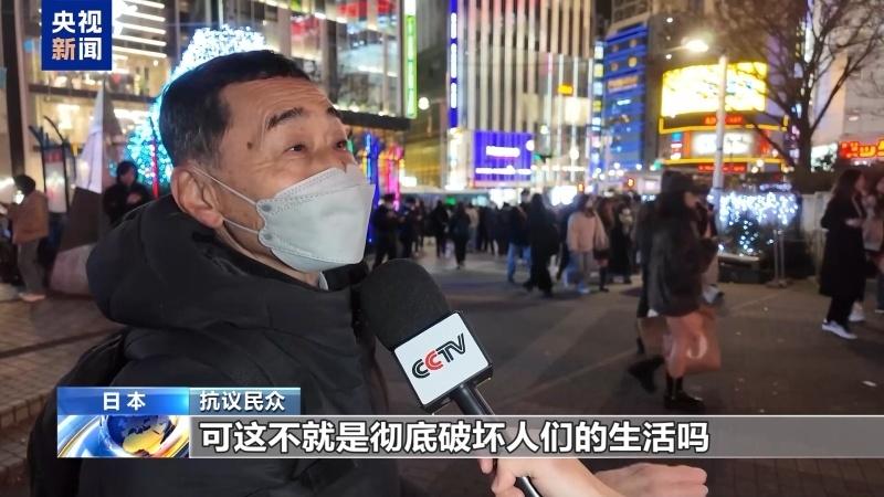 抗议民众:新增防卫费,钱要怎么来?说是靠发行国债,再就是提高消费税、提高所得税。可这不就是彻底破坏人们的生活吗?现在已经有越来越多的人连过节的东西都买不起了,连大米都买不起。