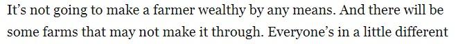 爱荷华州大豆协会主席汤姆·亚当(Tom Adam)在文章中表示,政府的农业救助计划“可能还不够。无论如何,这些救助都无法让农民变得富有,而且有些农场可能撑不过去。我听很多人说这可能是他们最后一年了:不管是破产还是想尝试其他出路。”