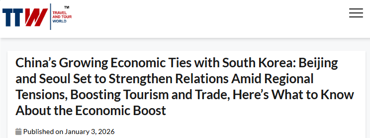 据《旅行与旅游世界》(Travel and Tour world)网站3日报道,韩国游客正蜂拥前往中国,从北京的长城、故宫到上海的活力街区,丰富旅游资源为韩国游客带来多元体验。而韩国作为中国游客热门目的地之一,首尔、济州岛、釜山等城市凭借多样的文化遗产与现代购物体验,吸引众多中国游客。
