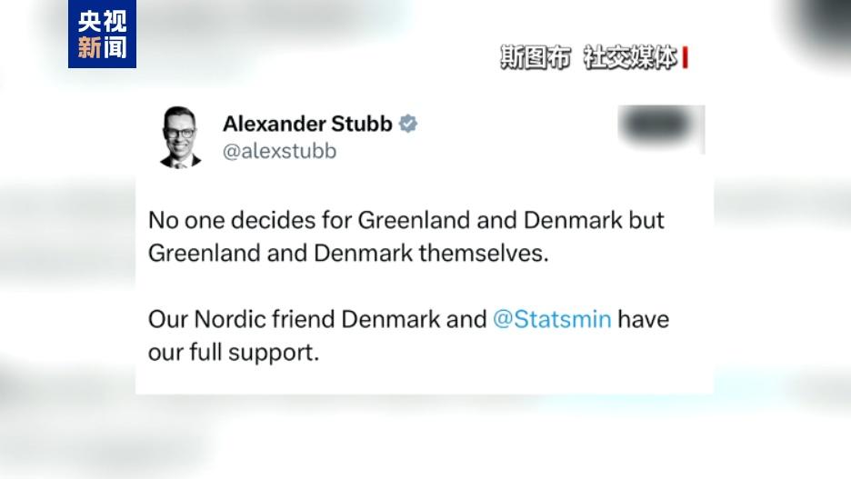 芬兰总统斯图布5日表示,除了格陵兰岛和丹麦之外,没有任何一方可以代替它们作出决定,芬兰全力支持丹麦和丹麦首相弗雷泽里克森。