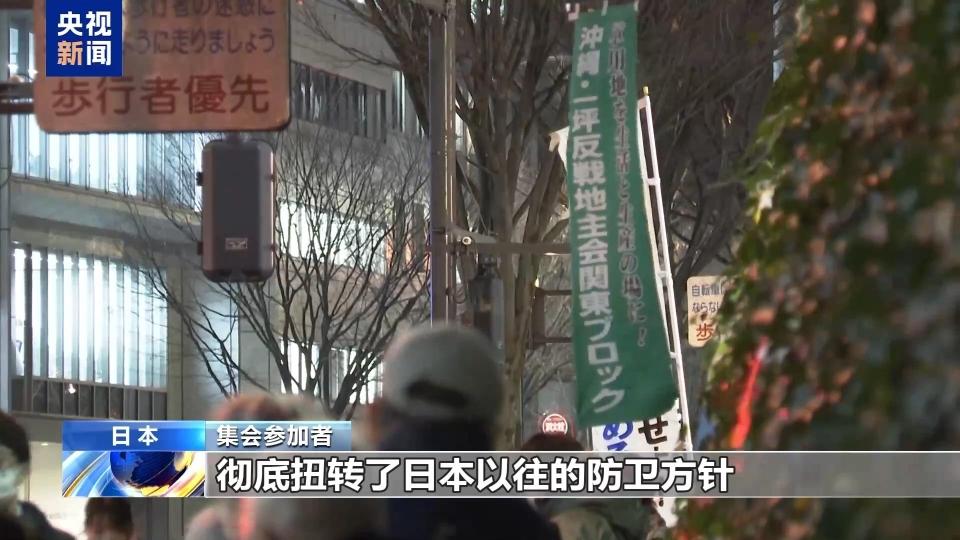 集会参加者:这可以说是非常离谱的发言。高市发言完全否定了迄今为止日本的防卫政策,这是一种极其危险的动向。