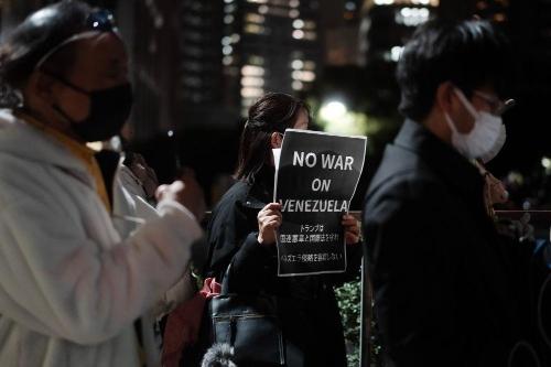 由多个市民团体联合发起的抗议活动于当日19时开始。抗议者高举“武力无法创造和平”“我们需要遵守宪法的政治”“地球上任何地方都不要战争”等标语表达诉求。民众谴责美国悍然对委内瑞拉动武,呼吁高市政府就此作出明确、负责任的表态,同时也对高市拟修改“无核三原则”等军事政策动向表达强烈担忧。