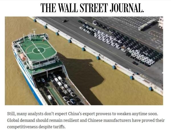 《华尔街日报》关注到,中国制造商在全球其他地区开拓了新市场。 文章说,去年,中国对东盟、欧盟、拉美出口均实现增长,对非洲的出口额更是大幅增长超20%。许多分析师认为中国的出口竞争力短期内不会减弱。全球需求应该保持强劲,而且尽管有关税的影响,但中国制造商已经证明了他们的竞争力。