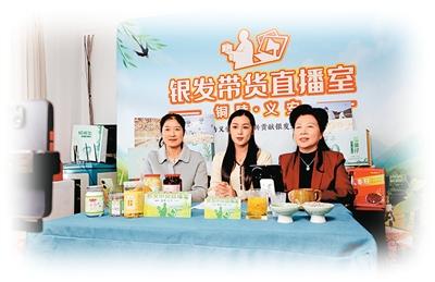 安徽省铜陵市义安区退休老干部(右一)参与直播带货。梅建广摄(人民图片)