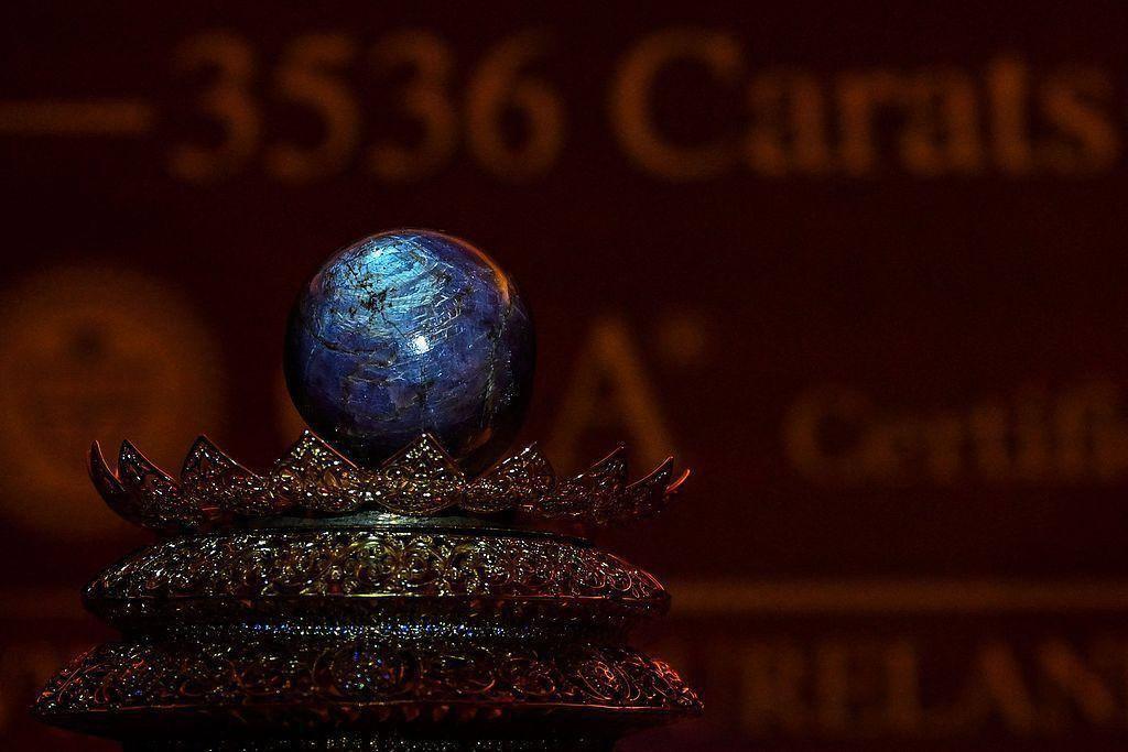 一枚3563克拉的紫星蓝宝石日前在斯里兰卡首都科伦坡公开展示,重量据称为同类宝石之最,预估售价在3亿美元以上。