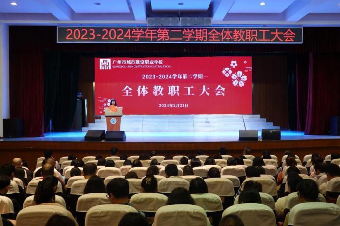 广州市城市建设职业学校校长陈黎靖召开全体教职工大会