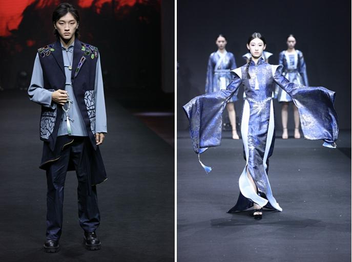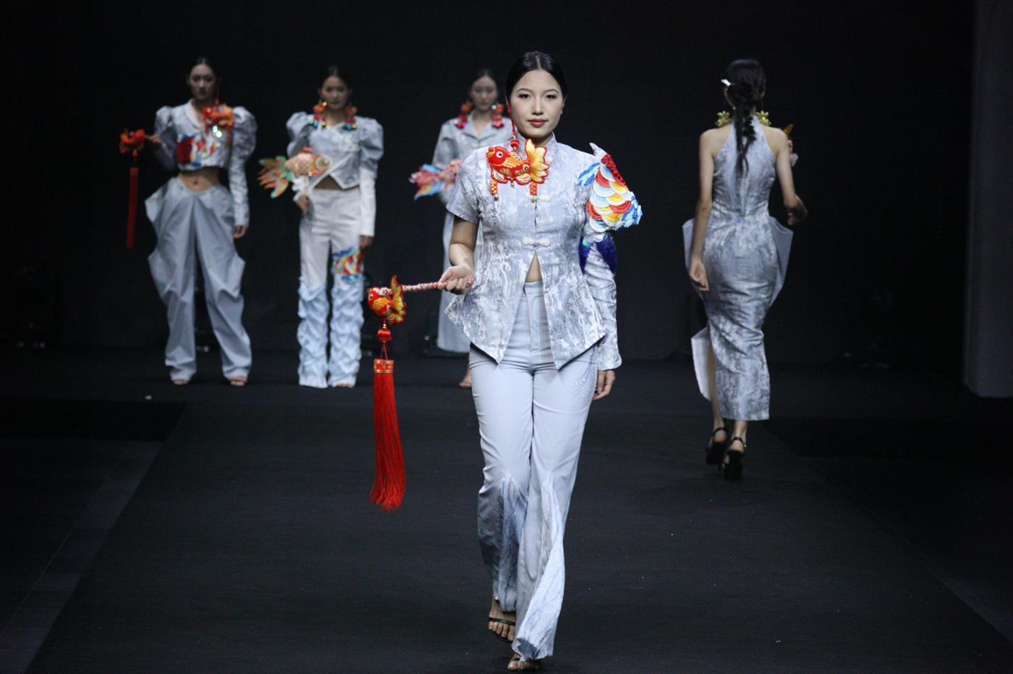 值得一提的是,广州纺校2024服装优秀毕业设计作品展演也在当天下午举行。此次展演以“传统·创新·赋能”为主题,共展示了13个系列近60套毕业设计作品。作品大多以传统造型、神话故事等为灵感来源,结合粤绣、手绘等非遗技艺,融入现代时尚元素,以创新的形式展现了岭南非遗服饰文化的独特魅力。同时,作品也体现了传承与创新交织的设计、织造、面料等方面的优秀工艺成果,彰显了中华民族传统服饰文化的特色与精神。